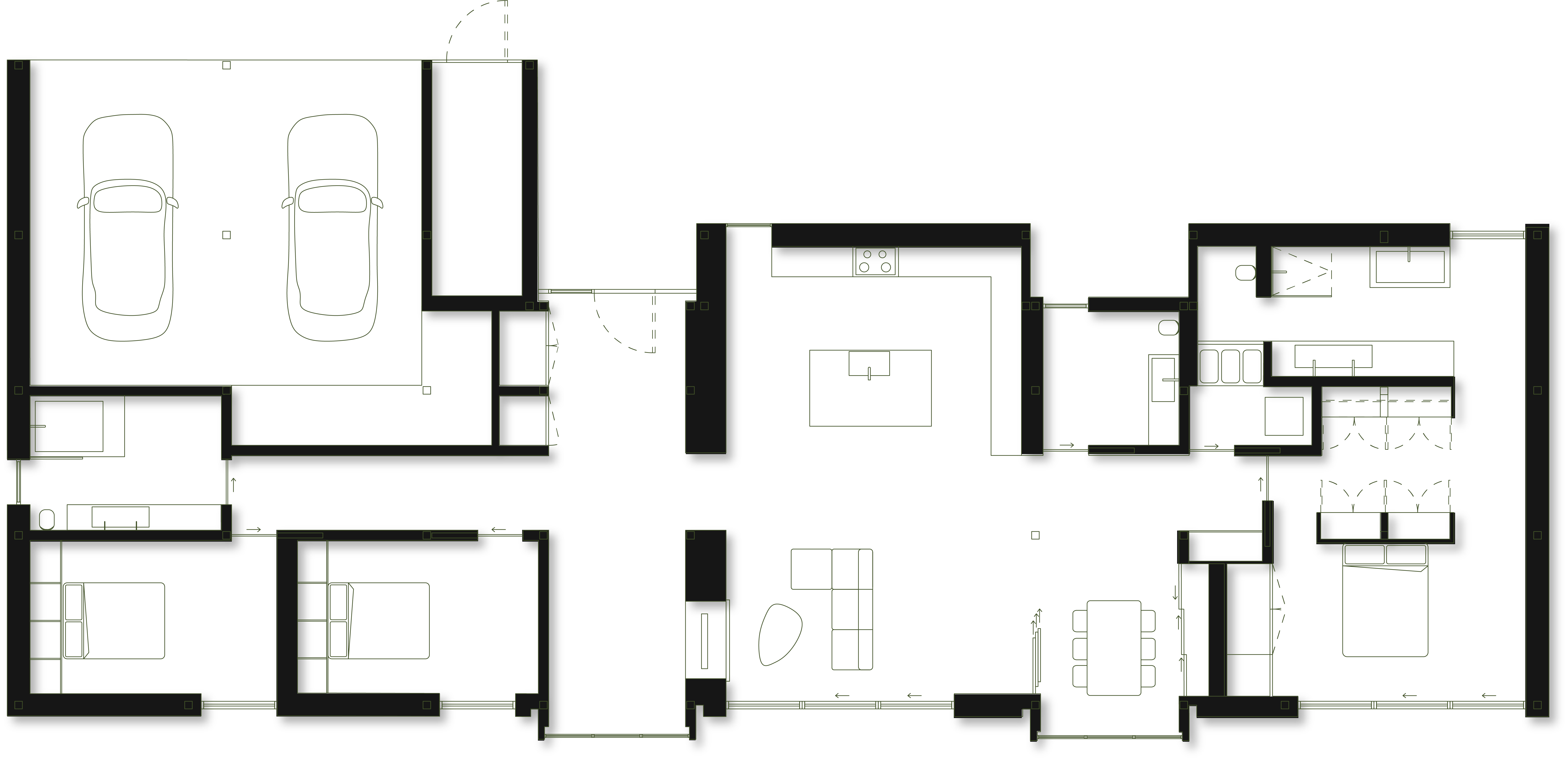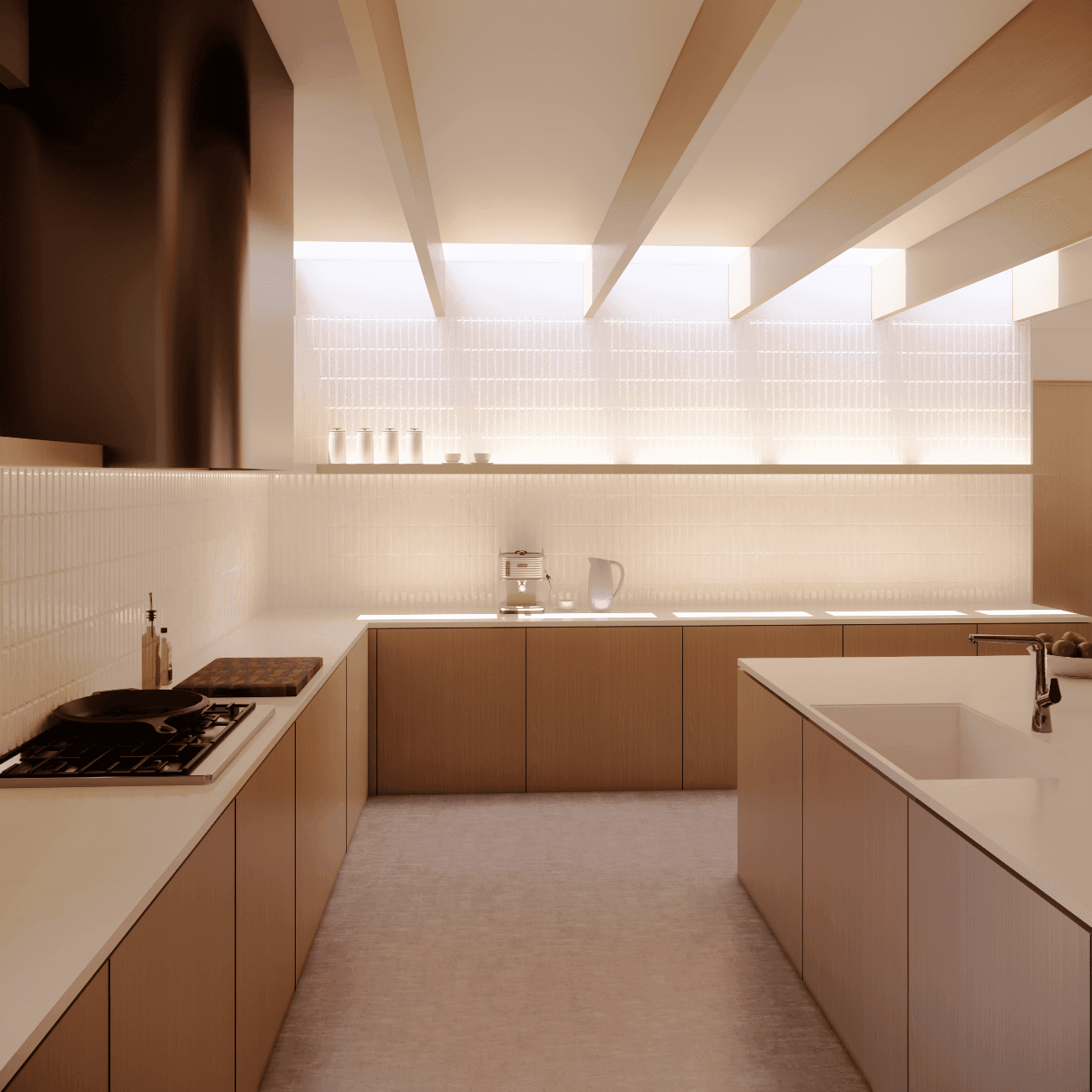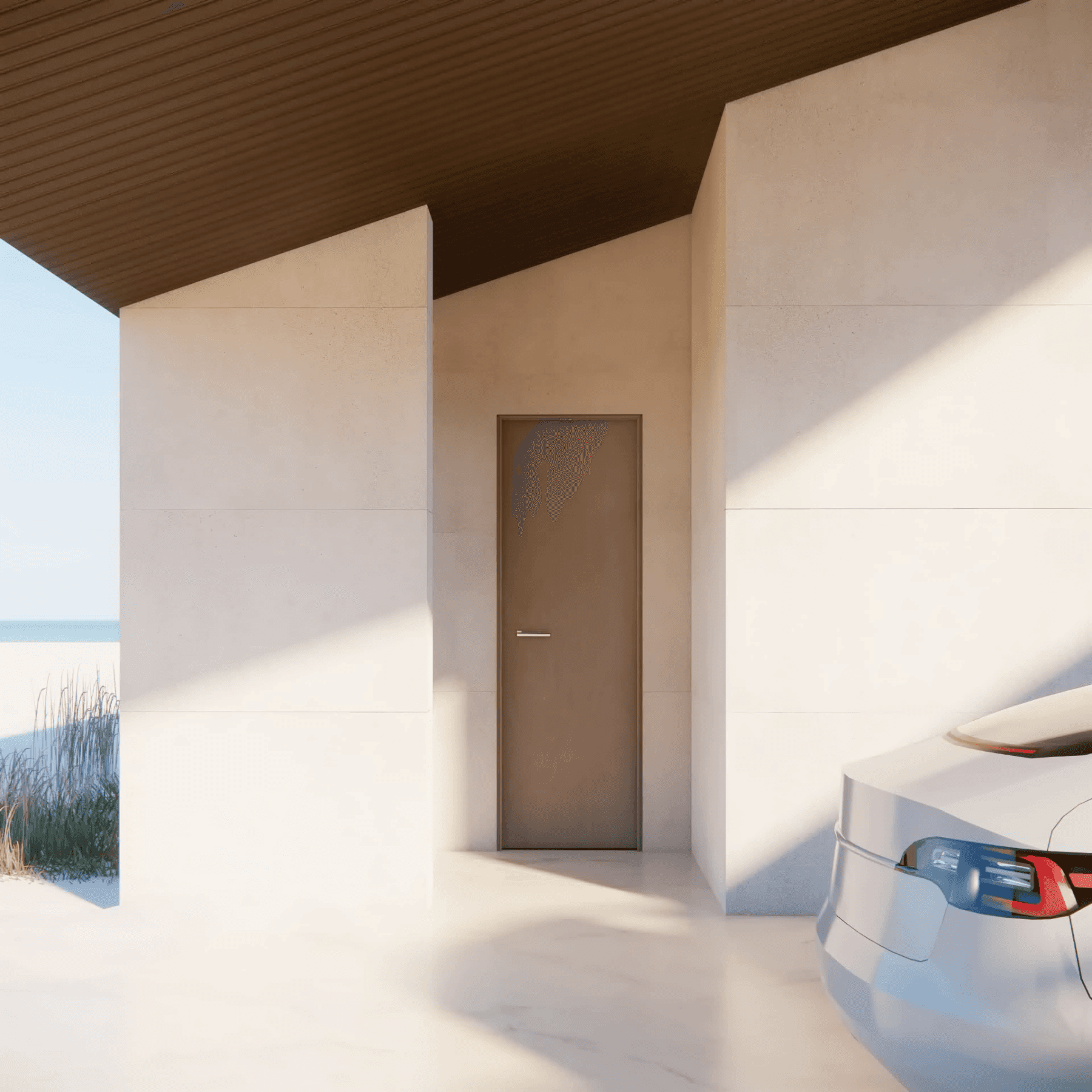 Beach House is a sculptural response to its coastal setting, defined by a procession of stone columns along its longest façade. Light filters through the colonnade, casting measured shadows that animate the interior throughout the day. Inside, a rich palette of dark wood and red marble creates a grounded, tactile environment that feels both elemental and refined. The architecture invites a slower pace, where spatial rhythm and material depth shape a continuous dialogue between landscape and interior. Every detail is composed to heighten the experience of place, permanence, and quiet retreat.