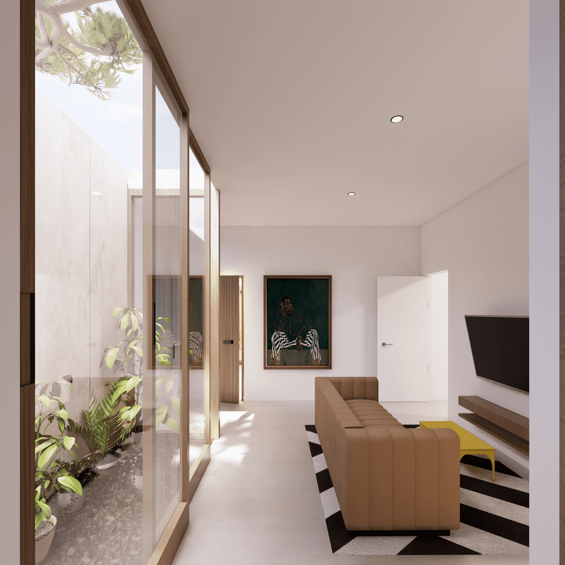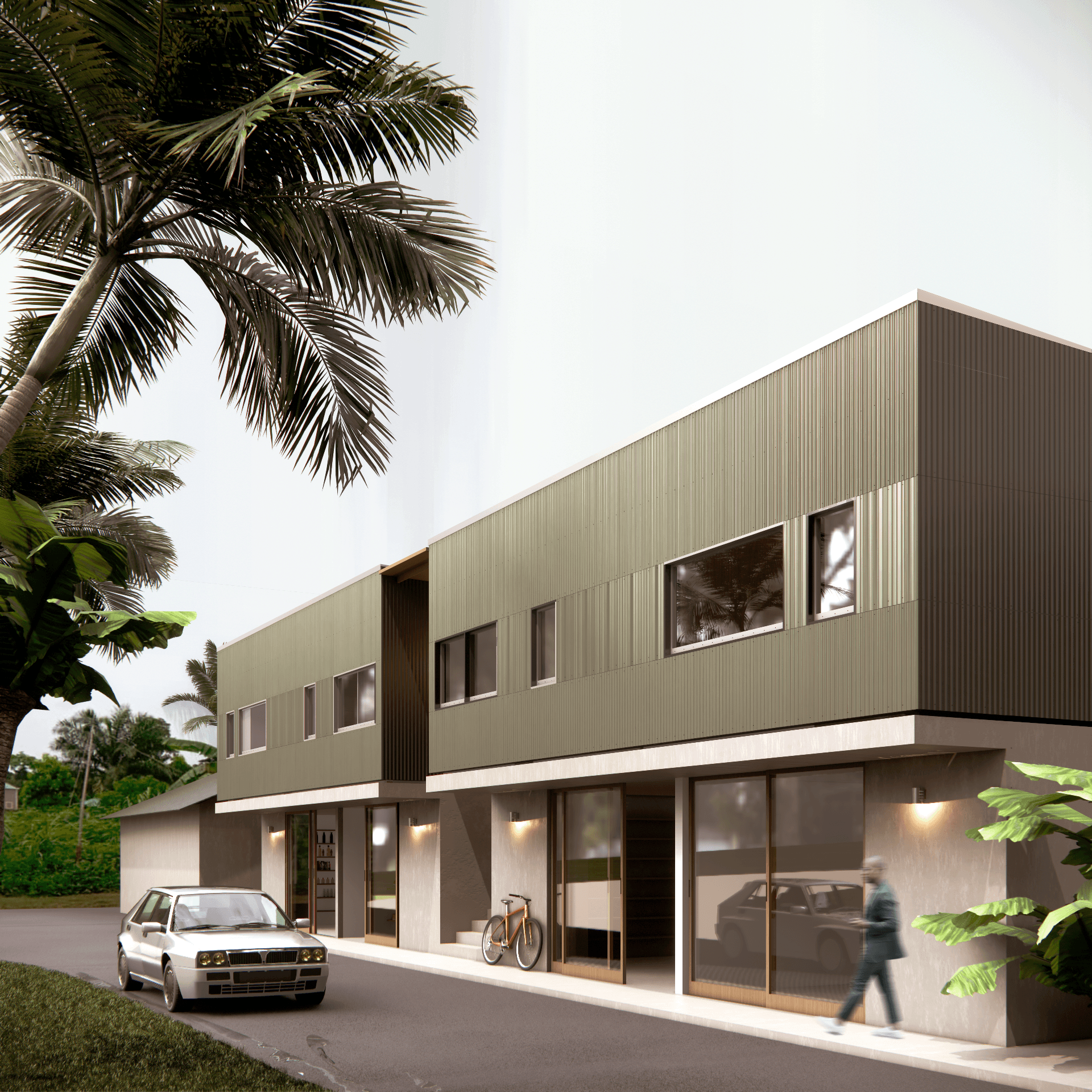 Embedded within the tropical landscape, the projects hosts a commercial ground floor with two residential units above. Embracing the symmetrical need of the program, the design reflects efficiency at the same time as playfulness in the use of volumes and materials.