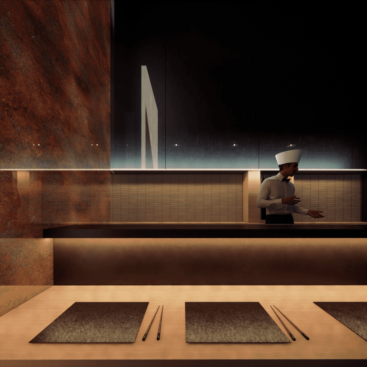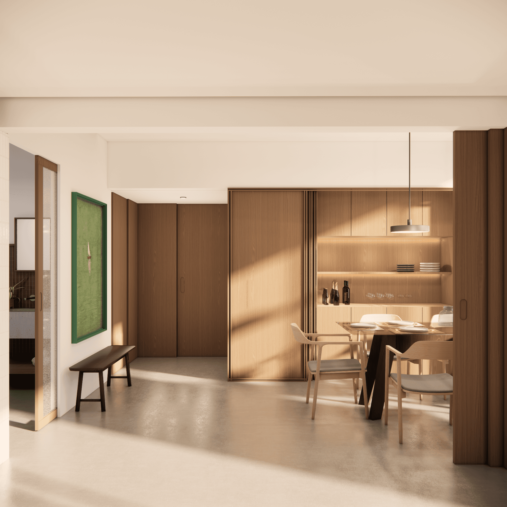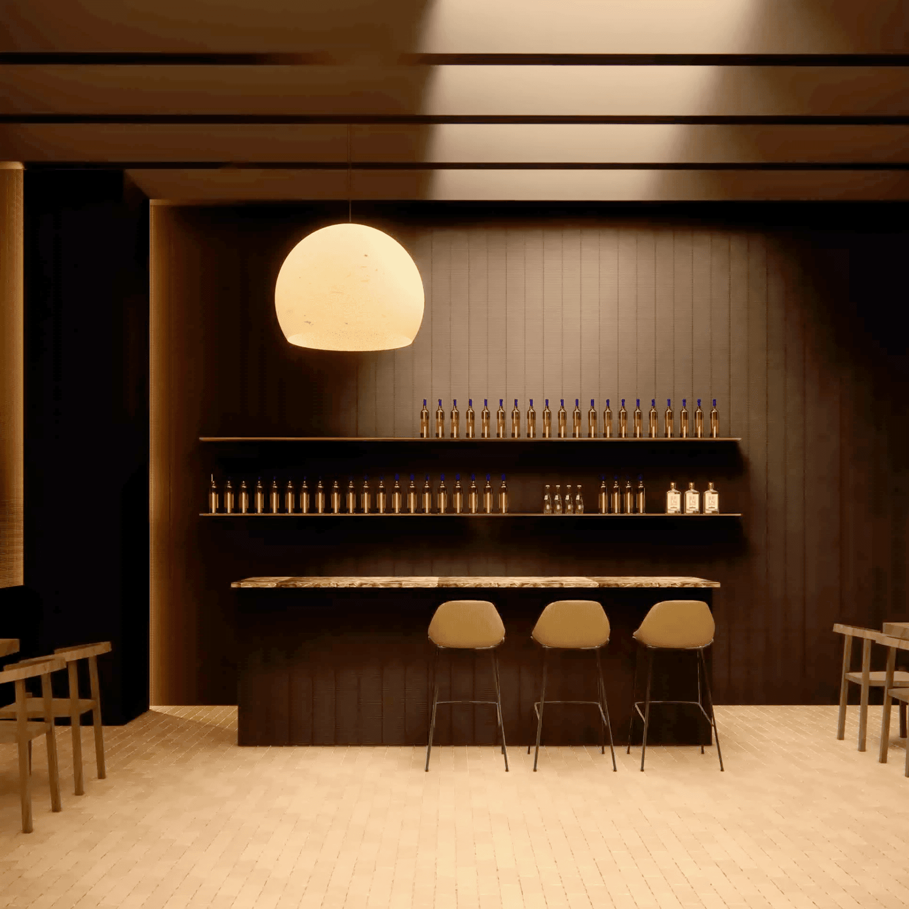 This wine cellar and tasting room is conceived as a quiet study in proportion, material, and light. Designed as a refined, immersive space, it balances warmth and precision through a restrained palette of natural stone, wood, and matte finishes. The architecture emphasizes rhythm and alignment—from the gridded shelving system to the soft glow cast across dark vertical surfaces. The concealed entry sets the tone for a space meant to be discovered gradually, while the bar and cellar invite lingering, conversation, and appreciation. At every scale, the design reflects a commitment to craft, clarity, and spatial calm.