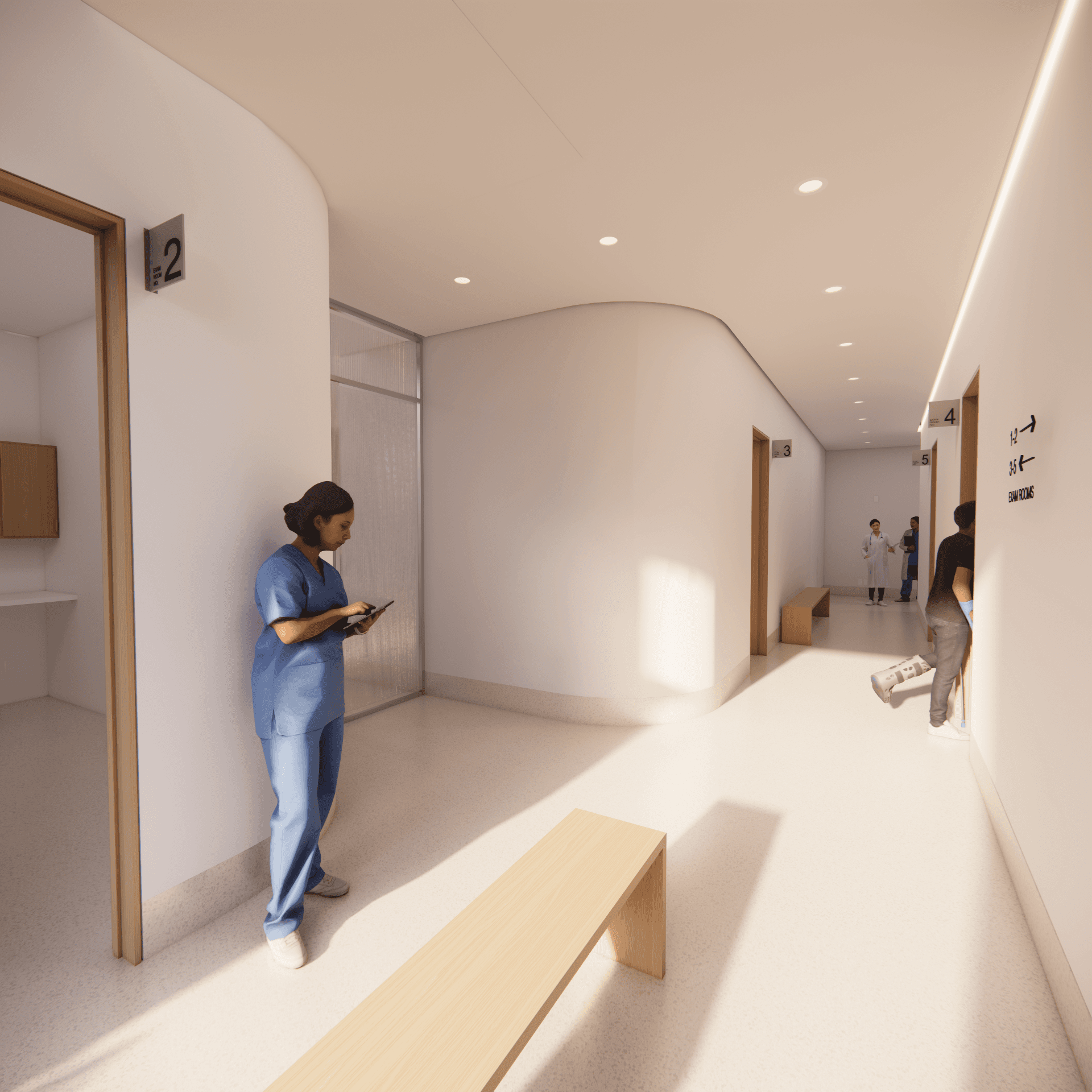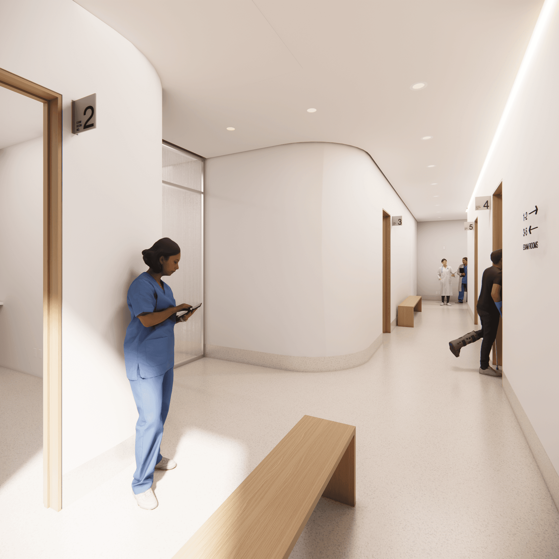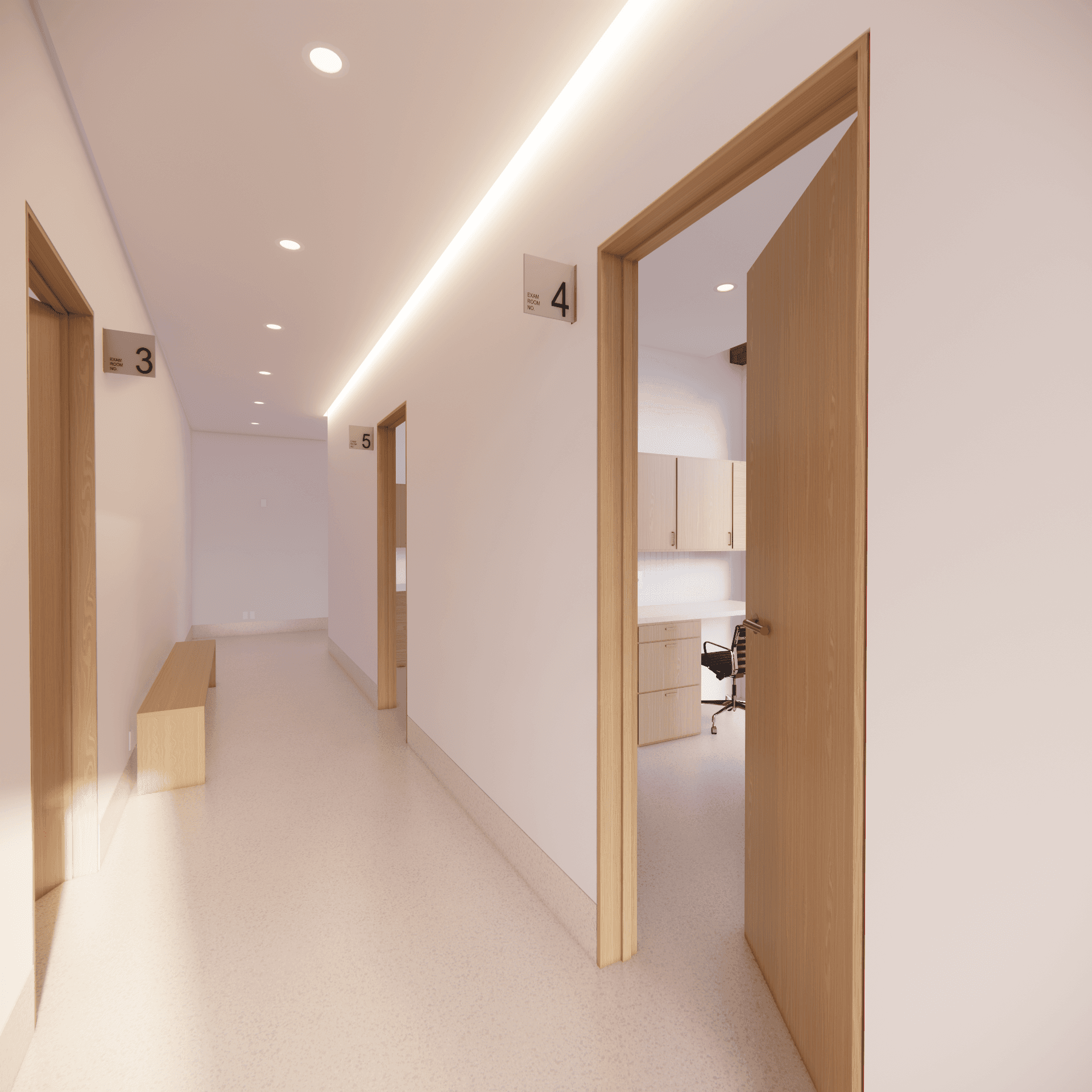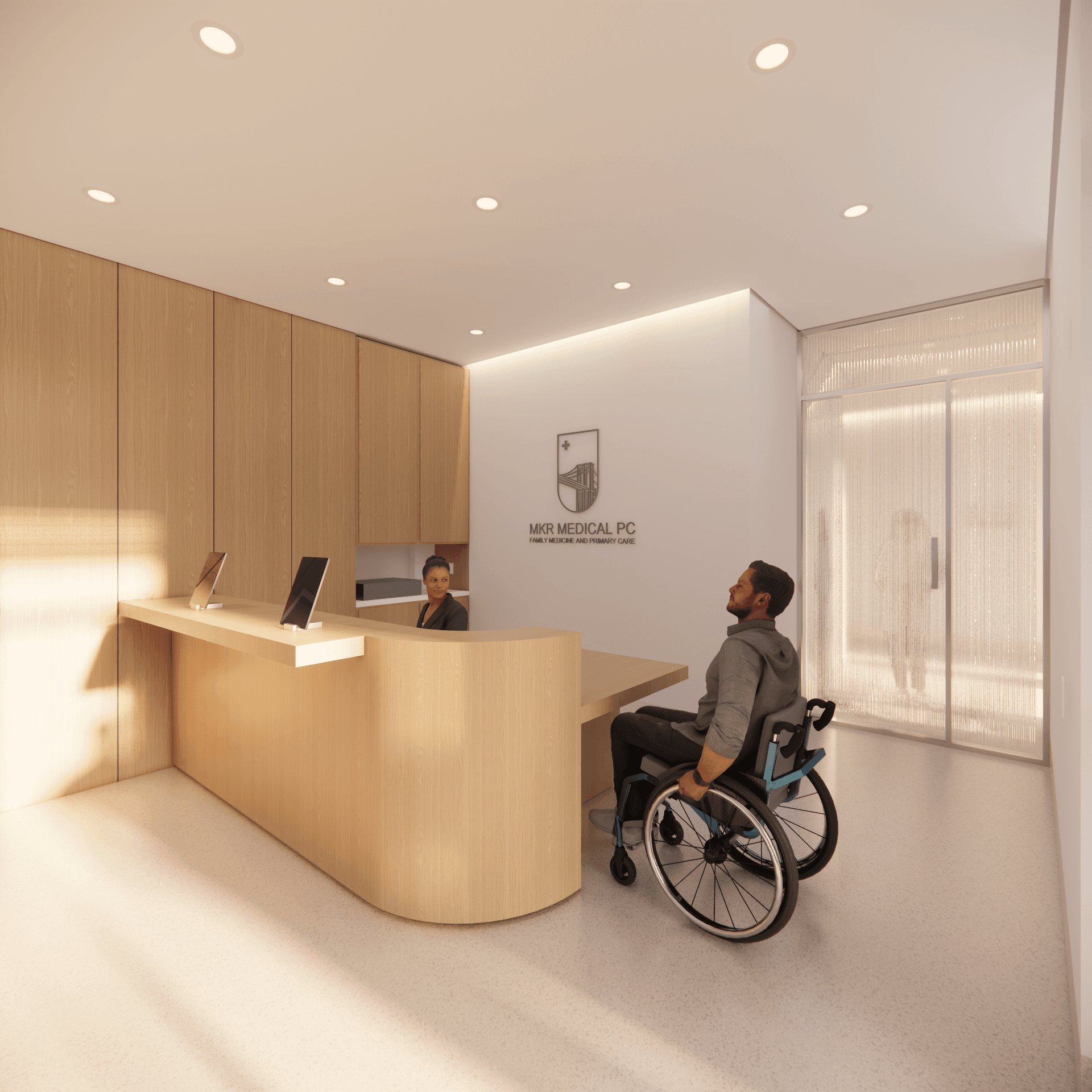 Located across the ground and basement floors, MKR Medical’s new home is a light-filled, modern medical office defined by clarity, functionality, and refined finishes. The space includes ten exam rooms and multiple support and work areas, creating a welcoming healthcare environment in Brooklyn.
