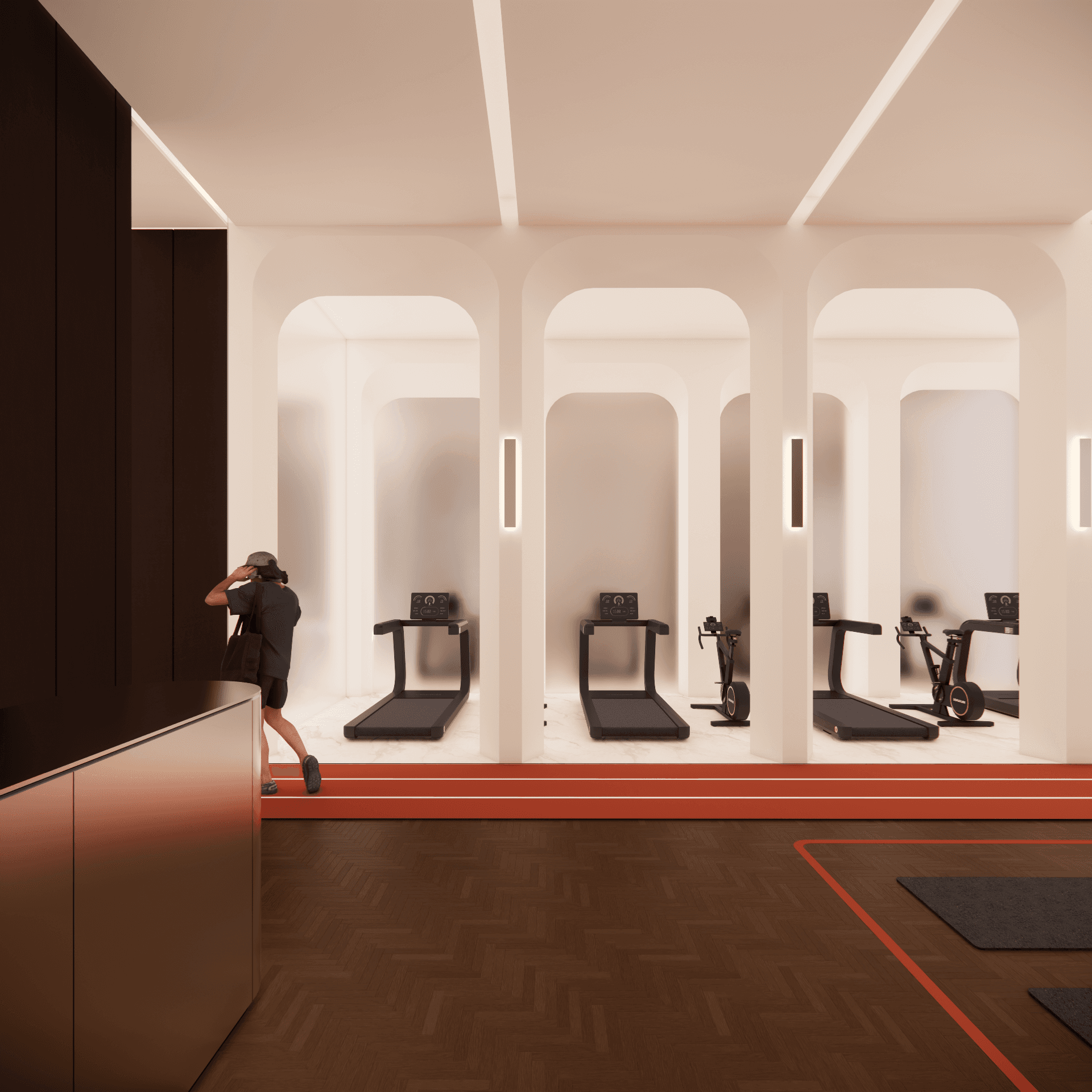 Upper West Side Fitness reimagines the gym as an elevated urban sanctuary, minimal yet richly tactile, refined yet raw in energy. Sculpted from warm wood, soft light, and rhythmic arches, the space balances rigor and repose. Each zone, whether for cardio, strength, or recovery, is defined by clean geometry and a palette that evokes both sophistication and calm. Velvet shadows, curated materials, and carefully framed views create moments of pause in a place designed for movement. More than a gym, it’s a spatial experience, one that invites clarity, focus, and ritual in the heart of Manhattan.